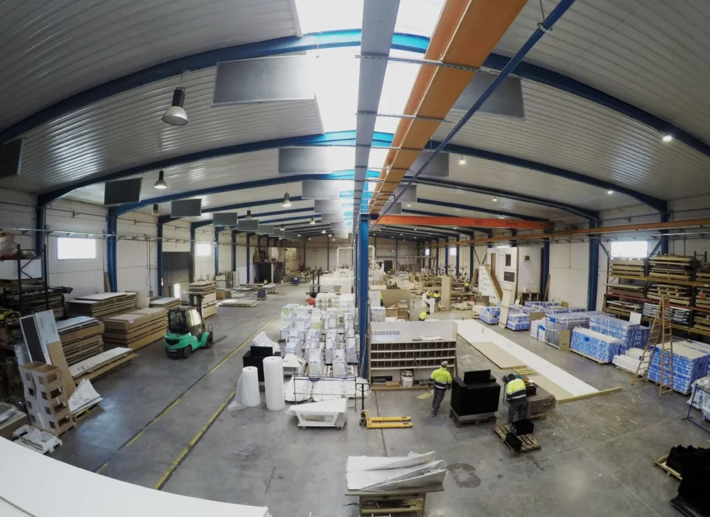 Contamos con un equipo multidisciplinar de diseñadores, carpinteros, lacadores, electricistas y montadores, que trabajan de forma coordinada en nuestras instalaciones de Madrid.